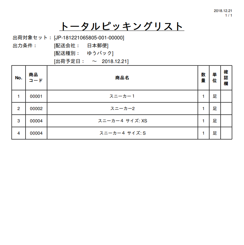 トータルピッキングリストは商品の必要総数を確認する事が出来ます。