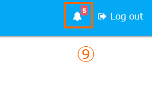 ⑨出力作業が完了すると画面上部のベルマークに通知がされます。