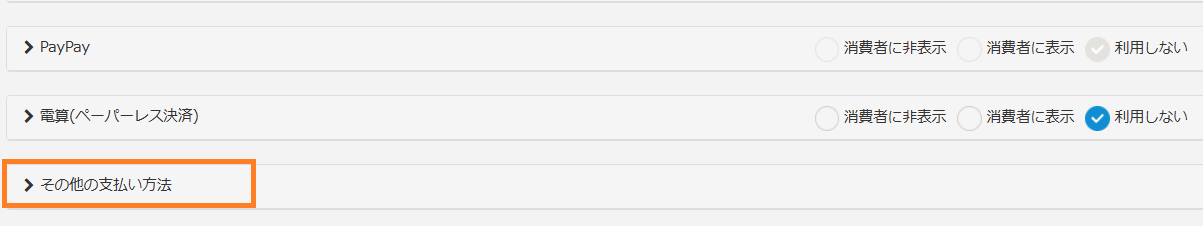 ②楽天から出力される受注CSV内の「支払方法名」を、「その他の支払い方法」に登録します。