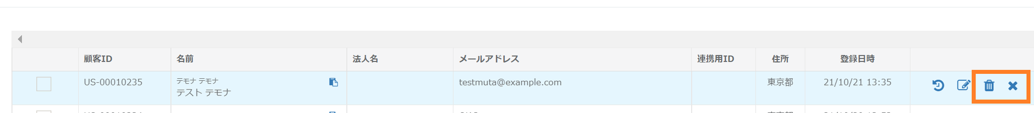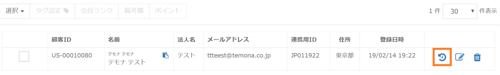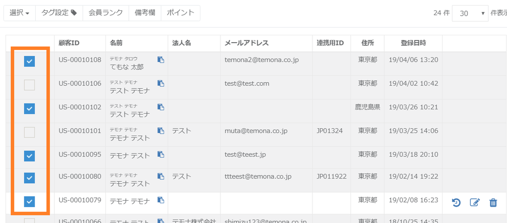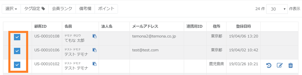 該当の顧客情報のチェックボックスにチェックを入れます。