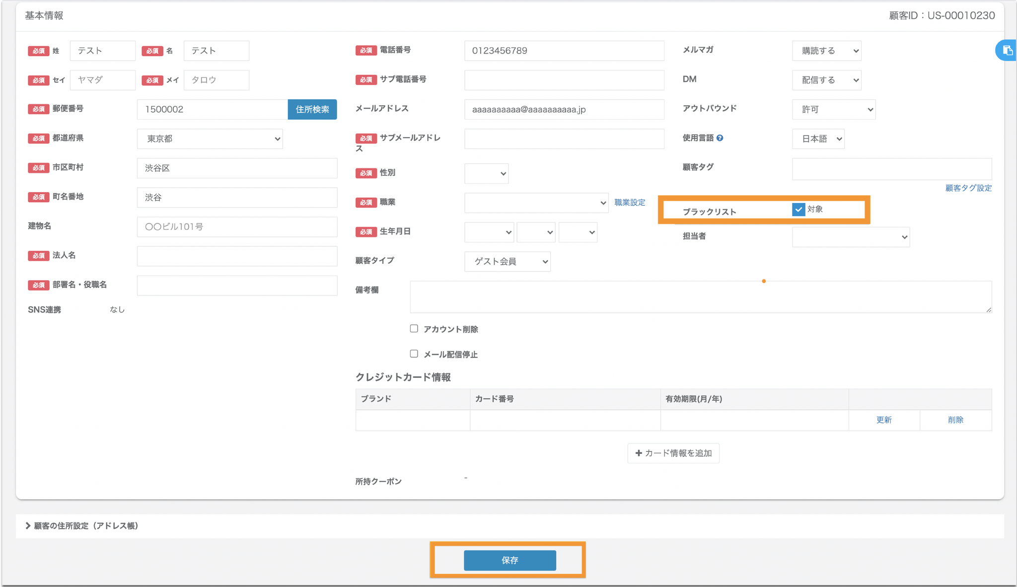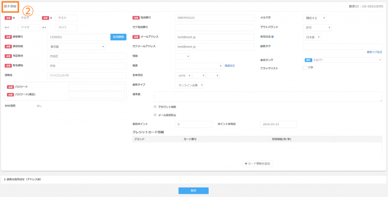 ⑥「保存」ボタンをクリックしますと顧客情報が登録されます。