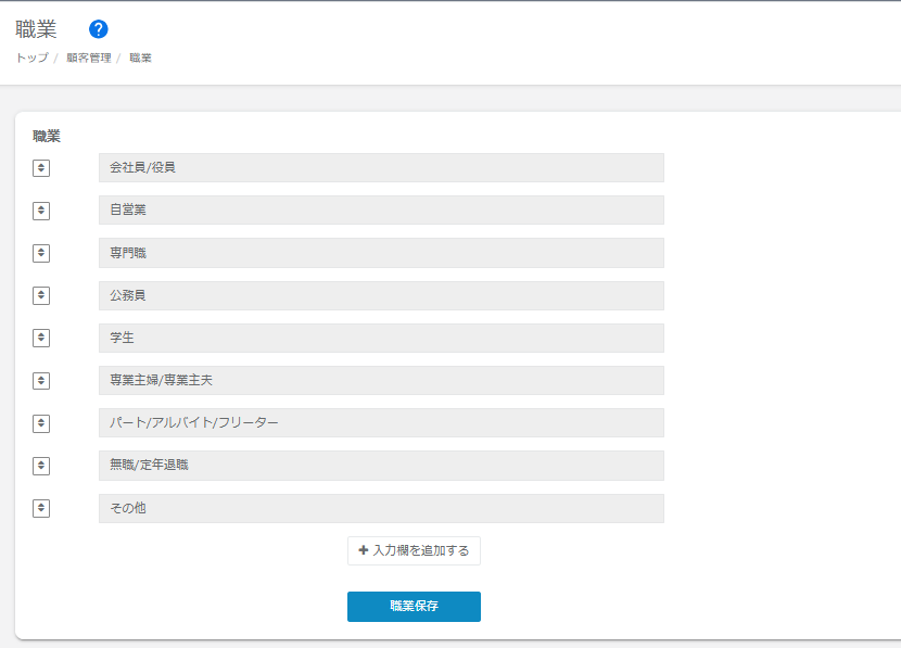 | 職業 | 職業を指定します。 ※【設定】>【重要項目設定】>【基本設定】にてフォーム表示項目の「職業」を選択している場合、検索項目が表示されます。 |