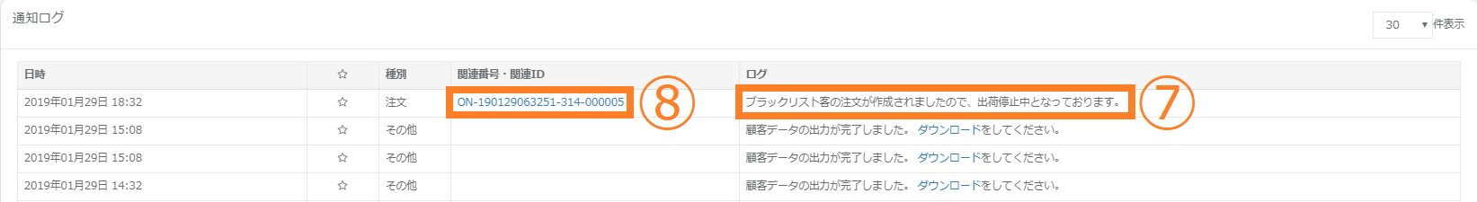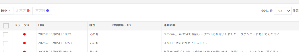 ⑤通知ログに遷移するので、「ダウンロード」をクリックし、データをダウンロードします。