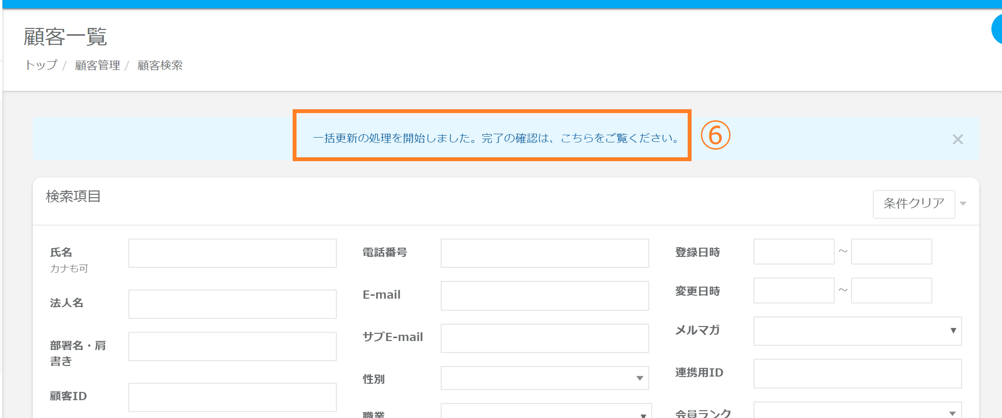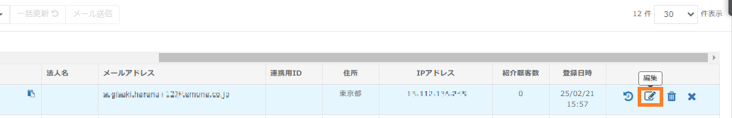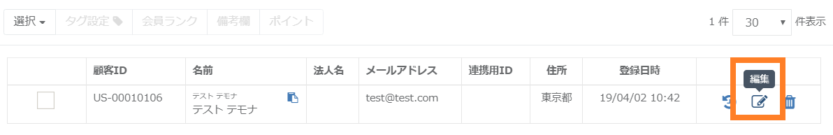 管理画面【顧客管理】>【顧客一覧(検索)】より下記情報を一括更新することが可能です。