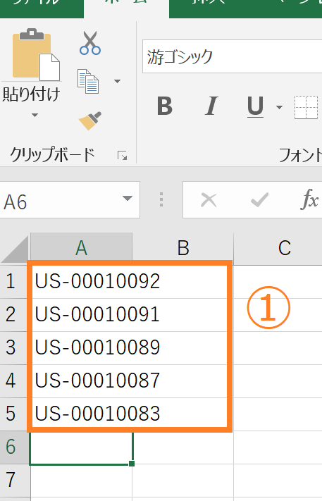 ①CSVのA列に対象の顧客IDをご入力いただき、拡張子をCSVで保存ください。