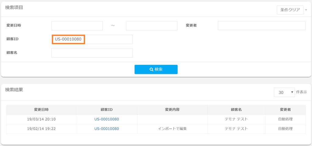 | 顧客ID | ご購入者様に割り振られる顧客IDを指定します。 ※完全一致での検索となります。 |