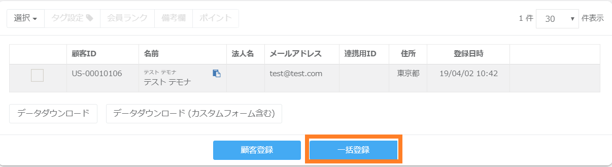 ③この場合、一括登録用ファイルの情報をもとに新しく顧客情報が登録されます。