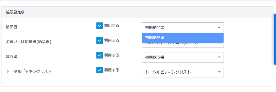 ⑥【設定】 > 【重要項目設定】 > 【配送方法設定】 > 【帳票設定】にて、使用するレイアウトをお選び頂き、【保存】ボタンをクリックしてください。