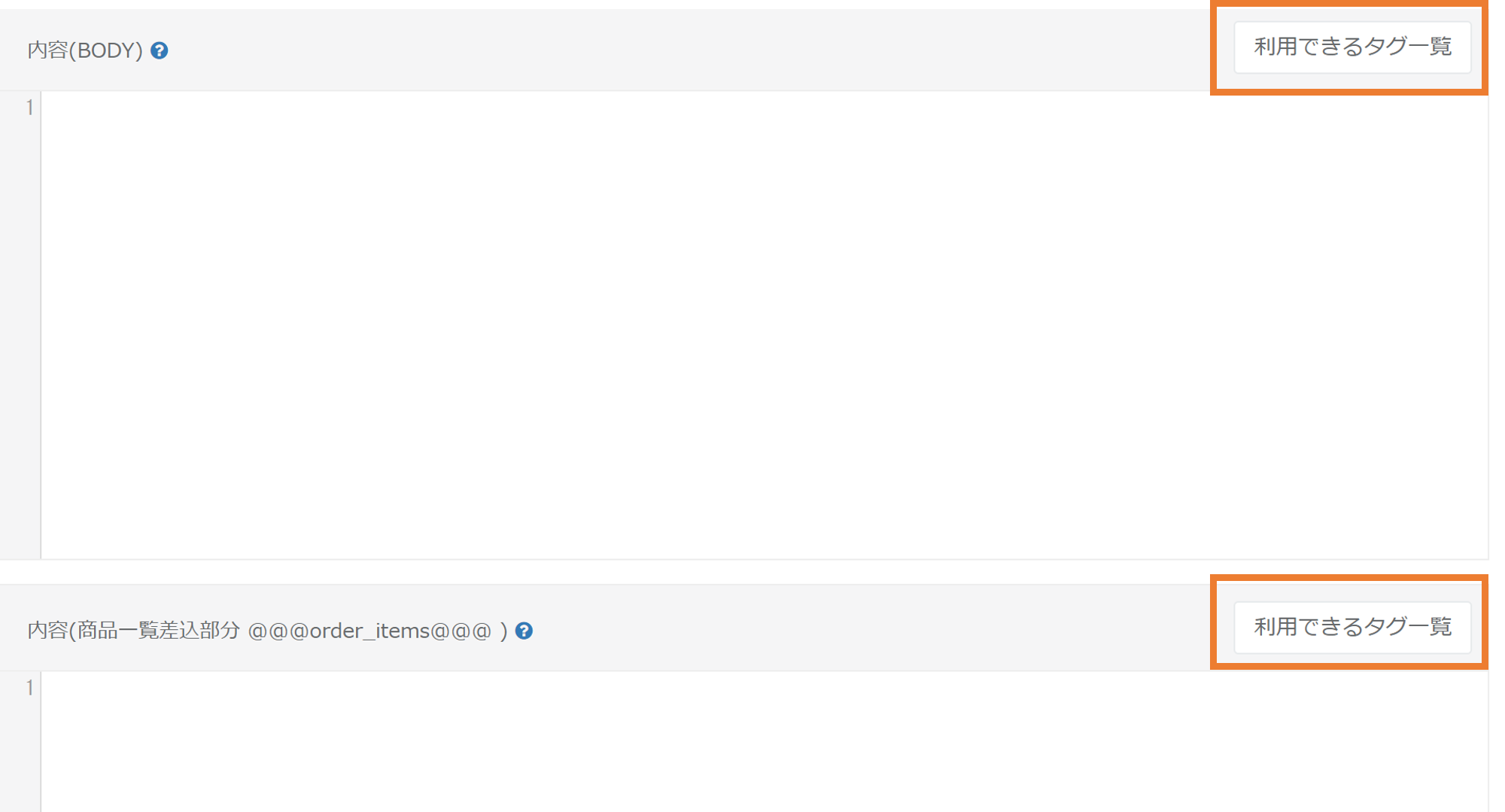 内容(HEAD)以外の項目の【利用できるタグ一覧】をクリック頂くと、HTML内でご利用頂けるタグをご確認頂けますので、利用したいタグを記述してください。
