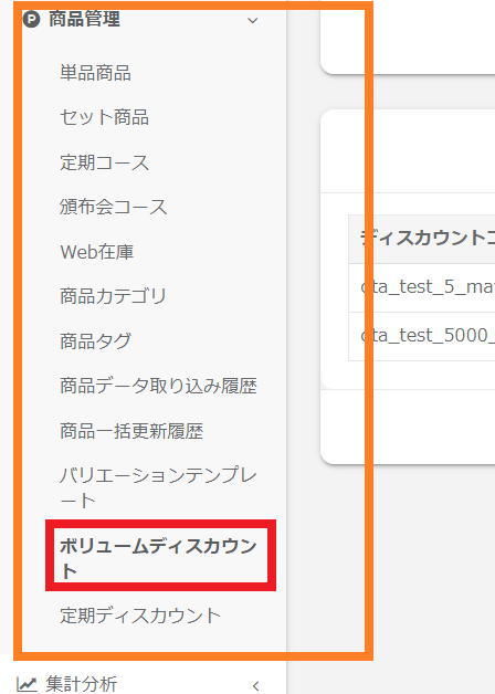 ①【商品管理】>【ボリュームディスカウント】をクリックします。