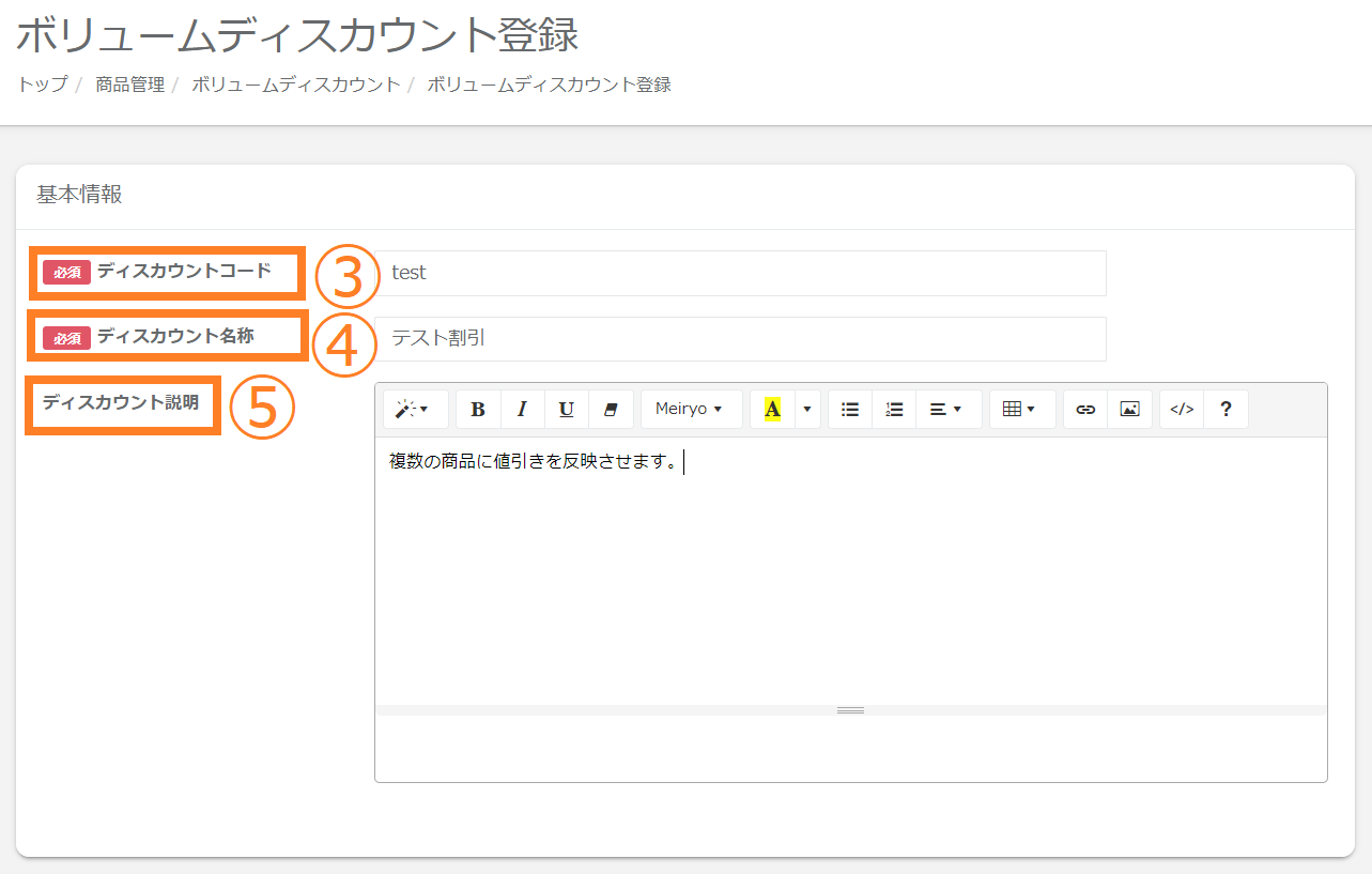 ④管理用のディスカウント名を任意の名称でご設定ください。