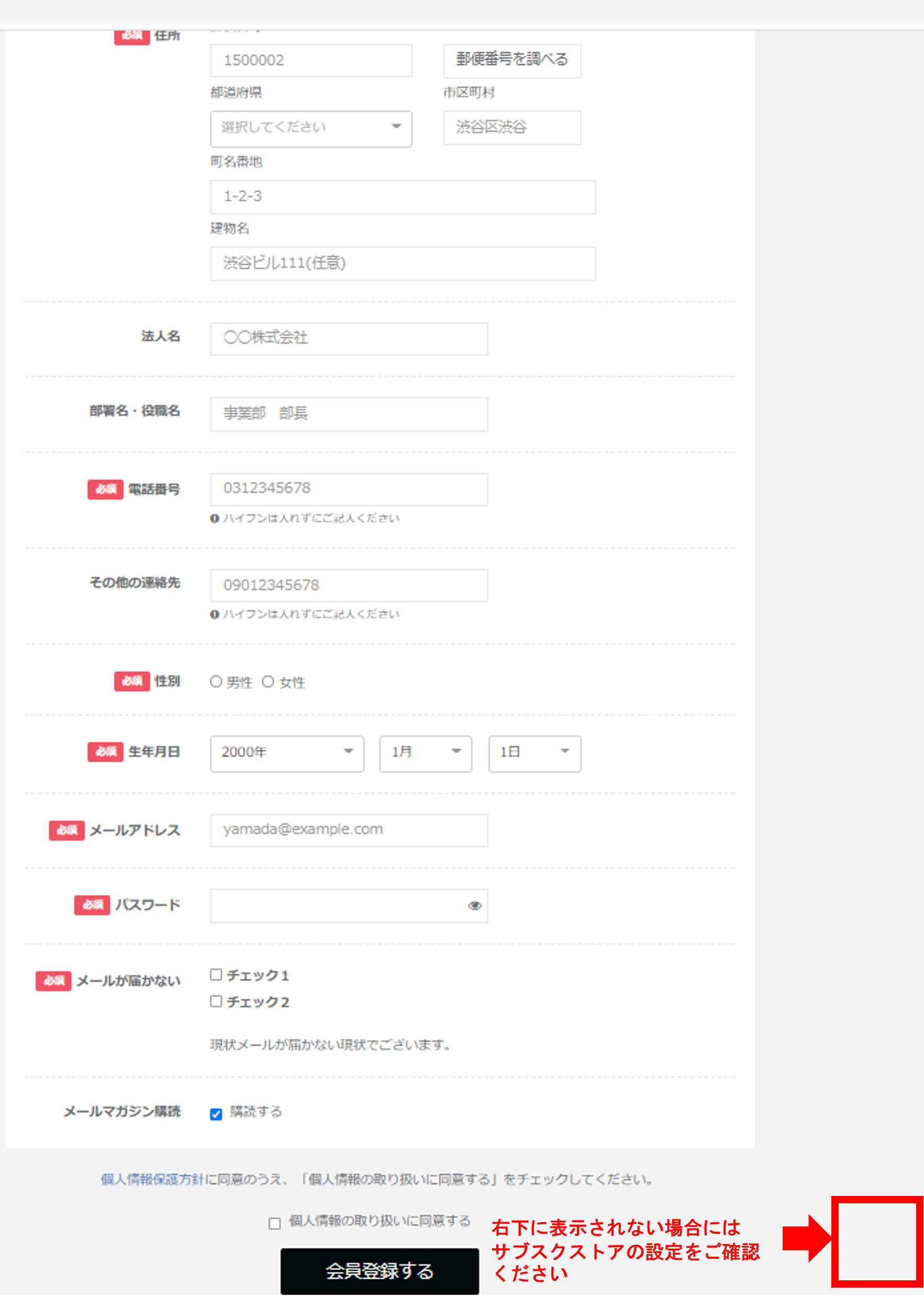 ┗お客様情報入力画面(購入情報入力画面)⇒ https://(カートドメイン)/checkout/register