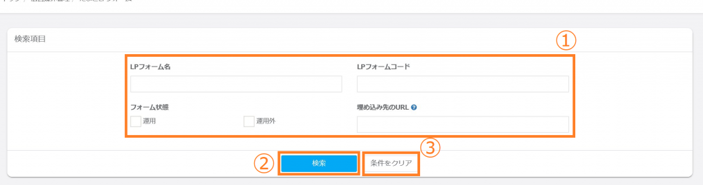 管理画面でLP一体型フォームを検索する際に使用できます。