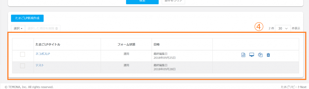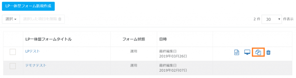 | 日時 | LPフォームを編集した最終日時が表示されます。 |