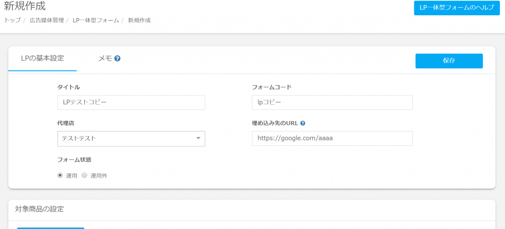 ※LP一体型フォームを作成する場合、「出荷なし商品」は登録できません。