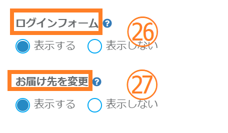 ㉗注文者とお届け先が異なる場合のご注文を承る場合に、入力欄の表示有無をご設定いただけます。