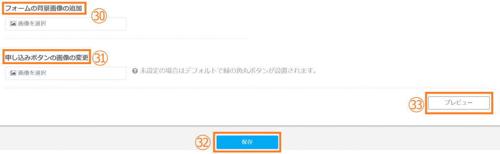 ㉛「申し込みボタンの画像の変更」にてお申込みボタンのデザインをご変更いただけます。