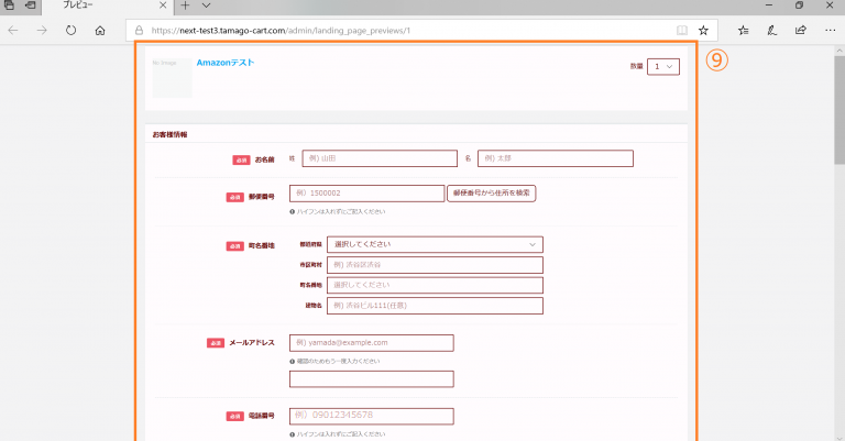⑨作成したLPフォームのページに飛び、実際に確認できます。