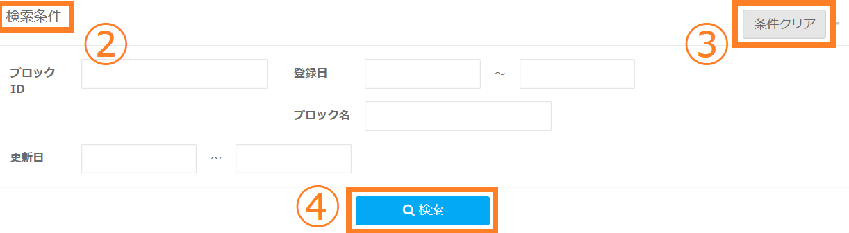 | ブロックID | ブロックIDを指定してください。 ※完全一致での検索となります。 |