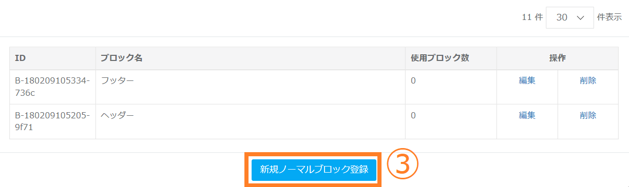 ④ブロック名は必須の項目です。管理用の名称をご登録ください。