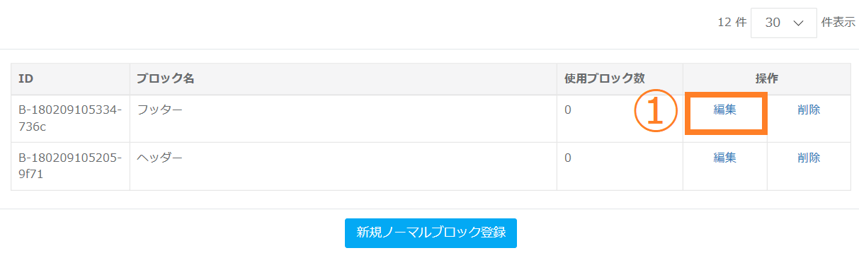①各ブロックごとに「編集」リンクがありますので、クリックしてください。