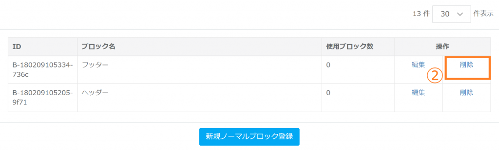 ②各ブロックごとに「削除」リンクがございますため、クリックしてください。