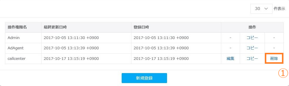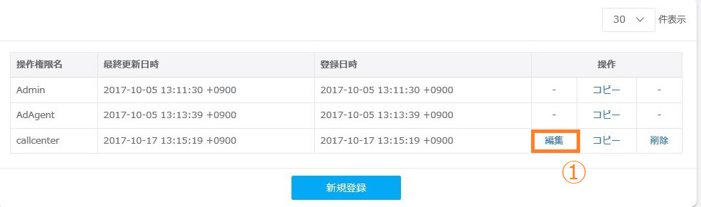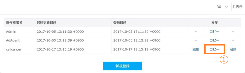 ③「新規登録」をクリックしていただくと新しく権限を登録することができます。