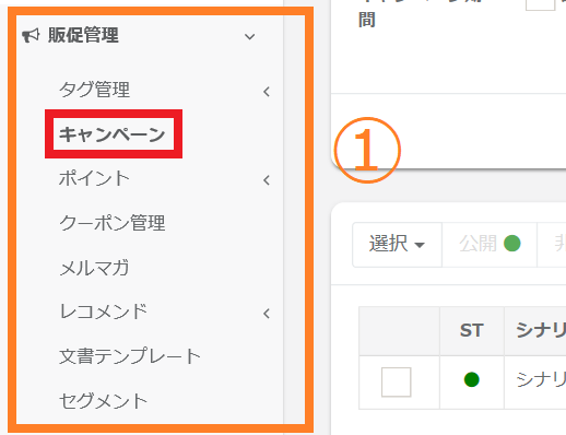 画面左のメニューバーより > 【販促管理】 > 【キャンペーン】をクリックしてください。