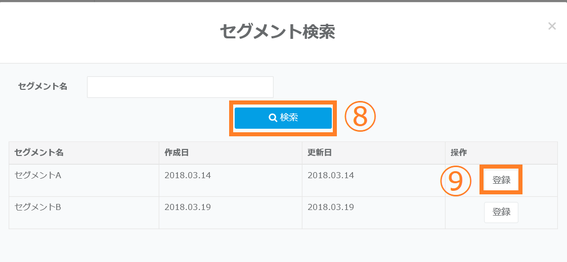 ⑨該当のセグメントの「登録」ボタンをクリックします。