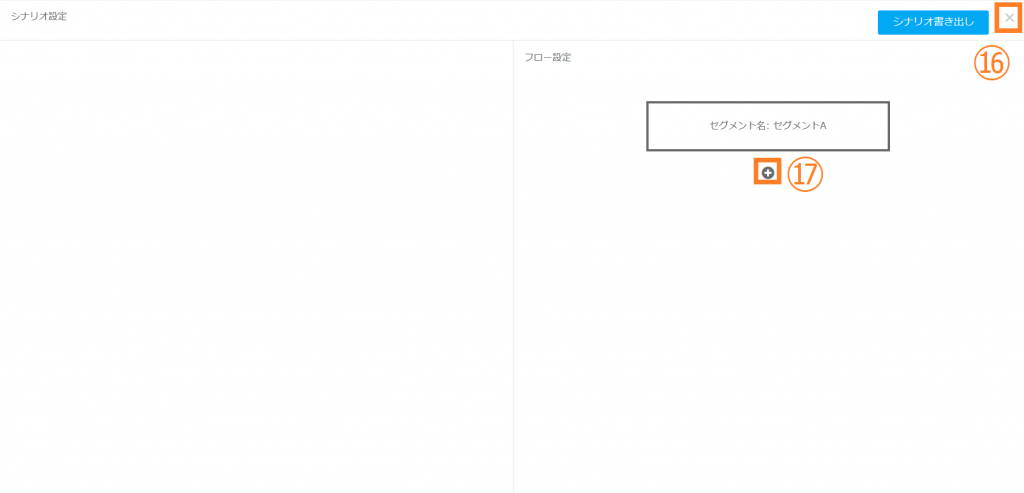 ⑯新たにシナリオ設定画面が表示されます。この時点で「×」ボタンで設定画面を閉じると、キャンペーンの概要部分のみ保存されます。後からシナリオを作成いただくことも可能です。