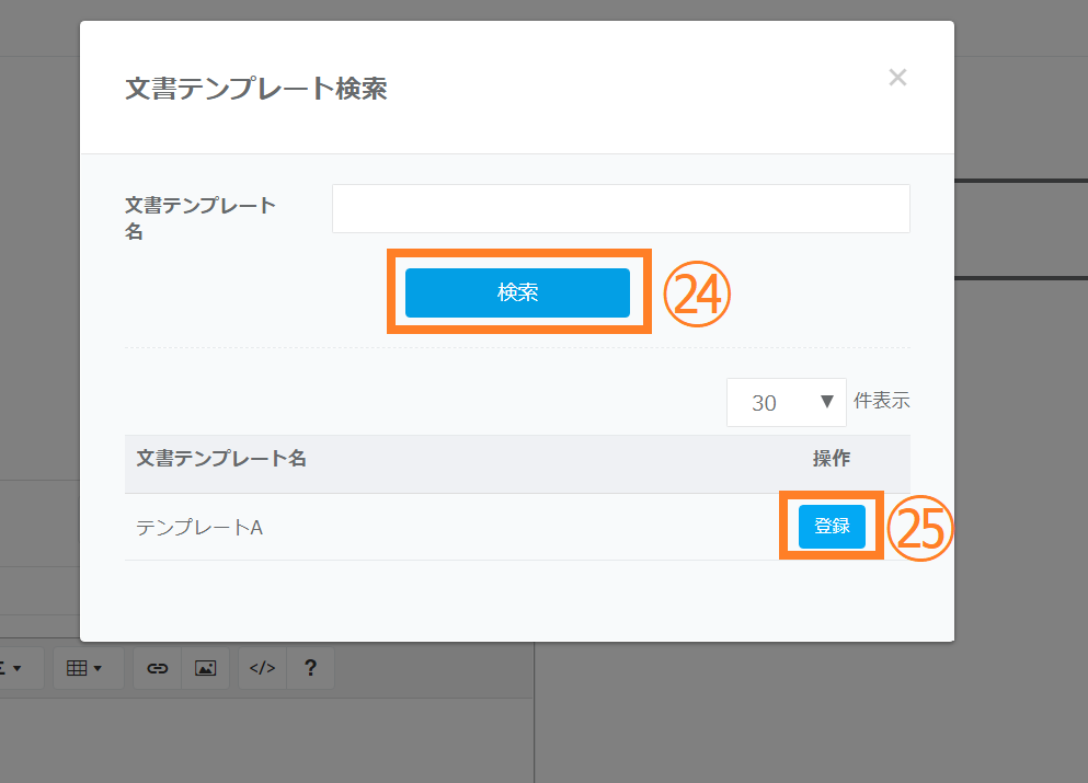 ㉔挿入する文書テンプレート名を入力し、「検索」ボタンをクリックします。