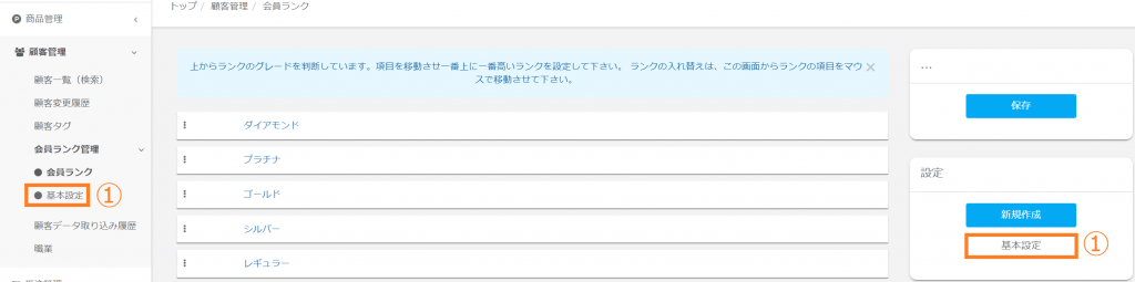 画面左のメニューバーより 【顧客管理】> 【会員ランク管理】>【基本設定】をクリックします。
