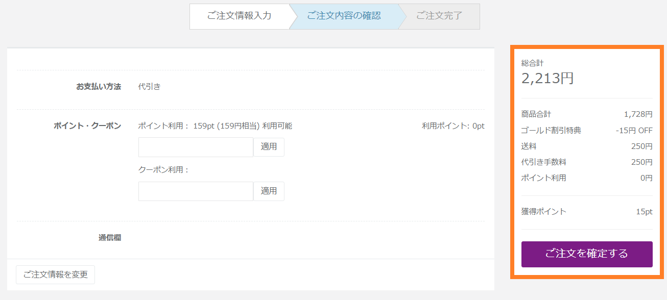 下記がご購入者様の会員ランクの特典が適用された購入画面の例です。