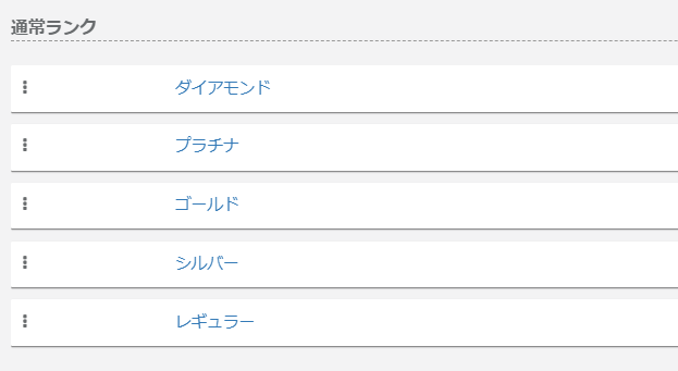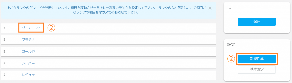 ②デフォルトで会員ランクが「ダイヤモンド」~「レギュラー」と設定されています。