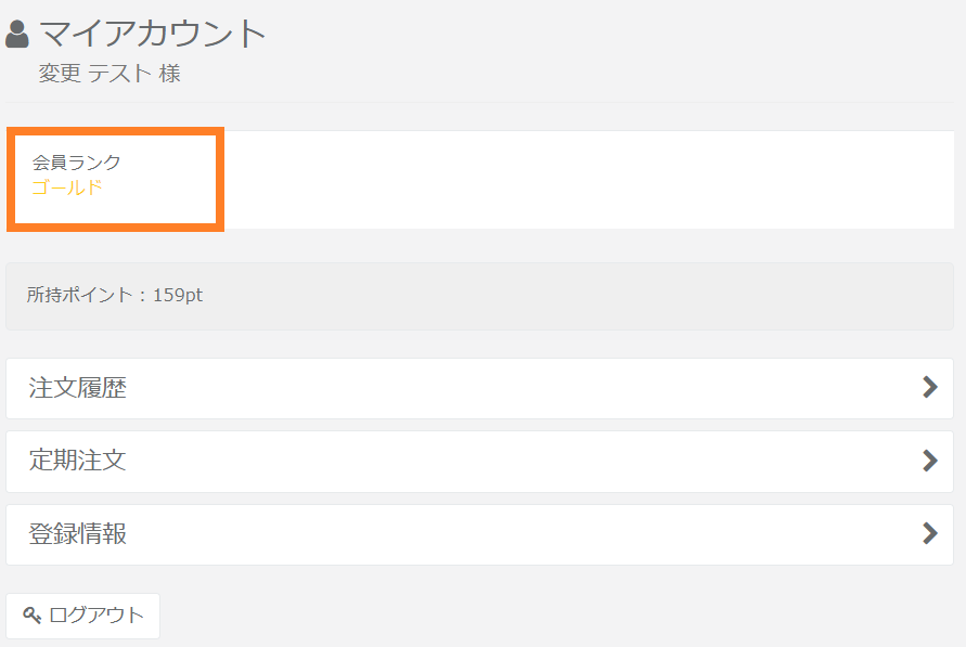 下記がご購入者様のマイアカウント画面に表示される会員ランクの例です。