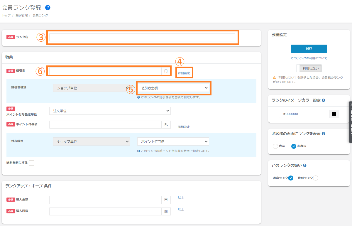 ※「利用しない」に設定した場合は、編集中の会員ランクのみが利用されなくなります。