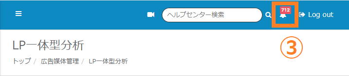 ③画面右側にありますベルマークをクリックします。