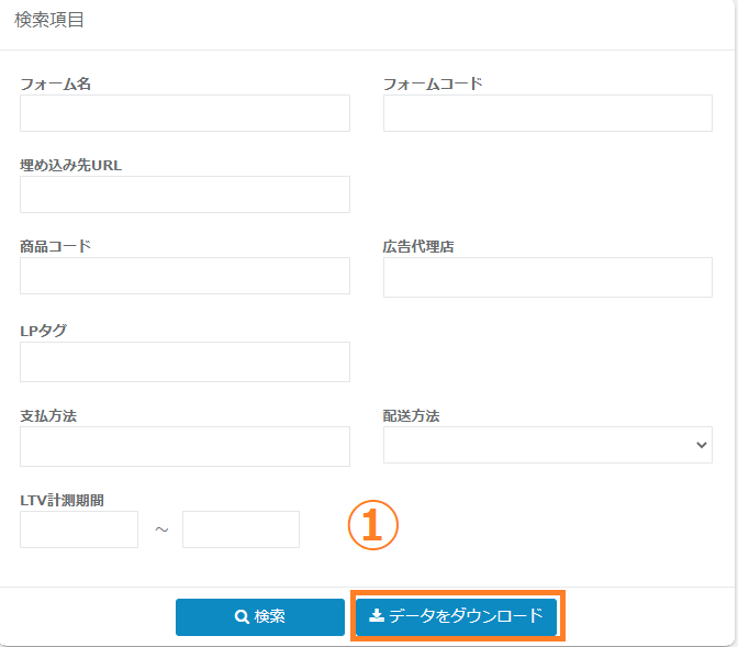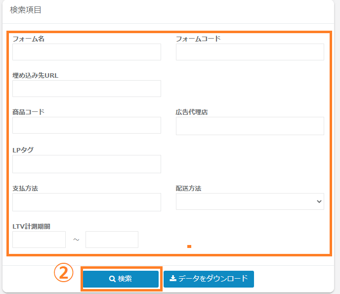 ②検索したいLP一体型フォームの条件を指定します。