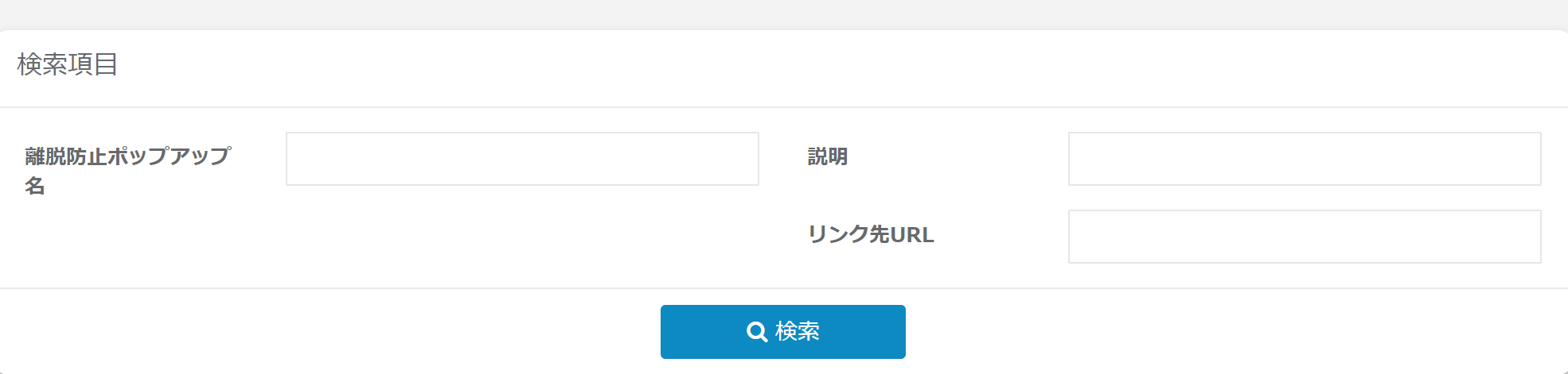 | 離脱防止ポップアップ名 | 離脱防止ポップアップ施策名を指定してください。 ※部分一致でも検索可能となります。 |