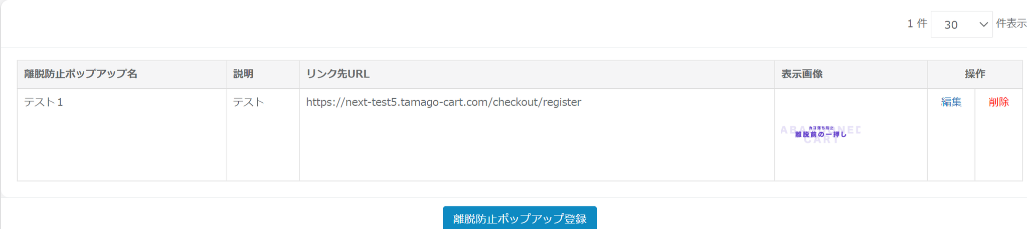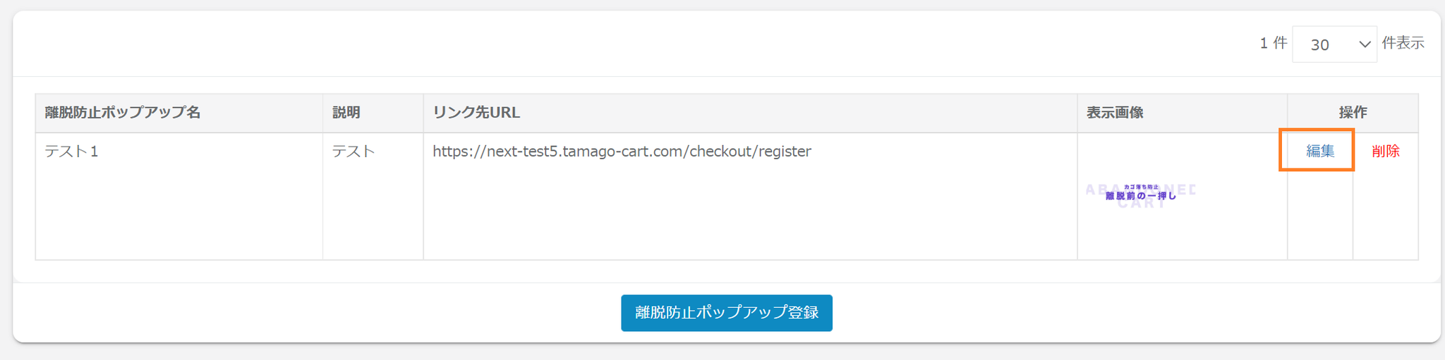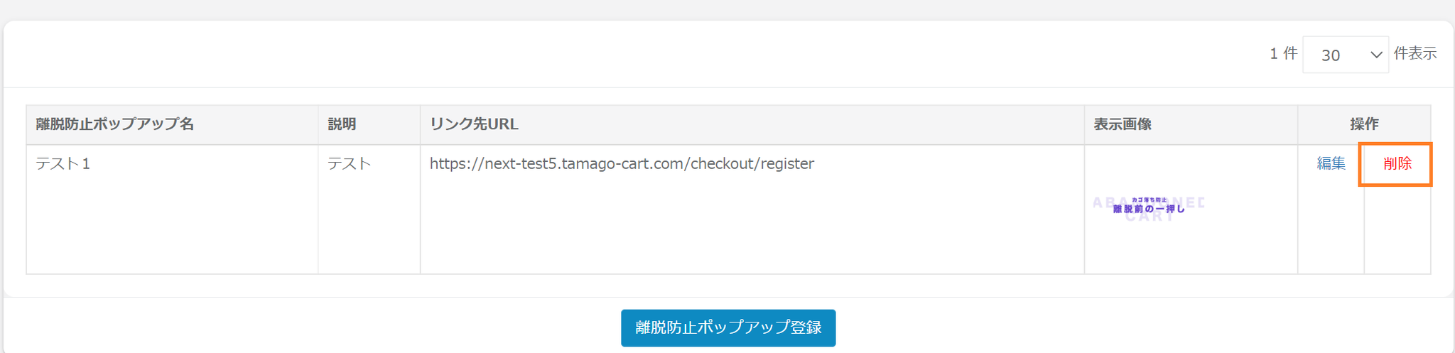 2.「離脱防止ポップアップ登録」ボタンをクリック