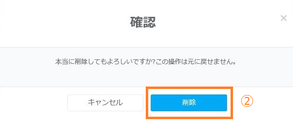 ②削除して問題ない場合は「削除」ボタンをクリックしてください。