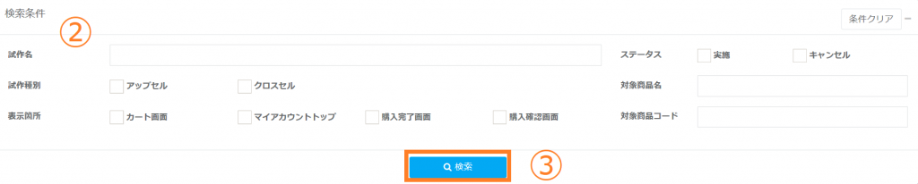 ②検索したいレコメンドの条件をご指定ください。