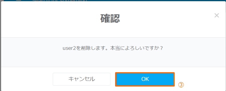 ②削除を行いたいユーザーアカウントの削除ボタンをクリックしてください。