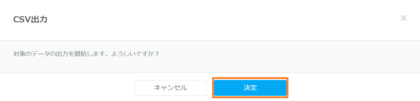 ③ポップアップでメッセージが表示されるため、出力をする場合は「決定」をクリックします。