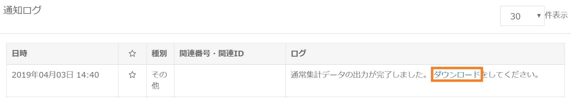 「こちら」のリンクをクリックいただくと、通知ログに遷移します。