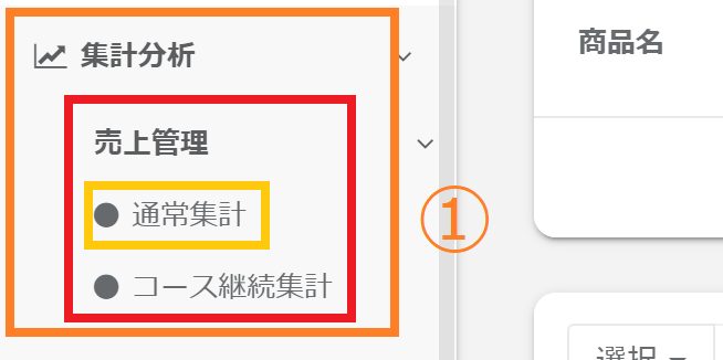 ①画面左のメニューバーより【集計分析】>【売上管理】>【通常集計】をクリックします。