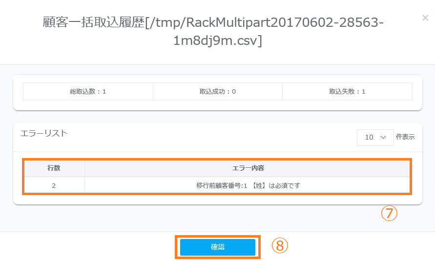 顧客一括登録の処理を行った際、正しく顧客データが取り込まれているか、取り込まれていない場合、どこでエラーになっているかを確認することができます。また、クレジットカードデータを移行される場合も同様に取り込み状況を確認することが可能です。