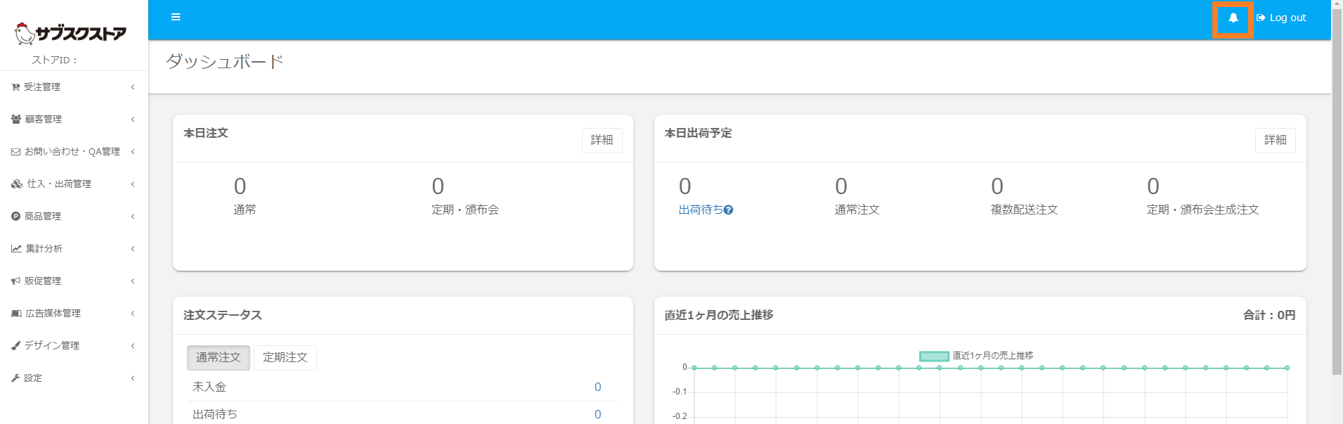 ※注文や顧客など各メニューよりCSVデータ出力をされた場合、通知ログから該当のCSVデータをダウンロードいただけます。