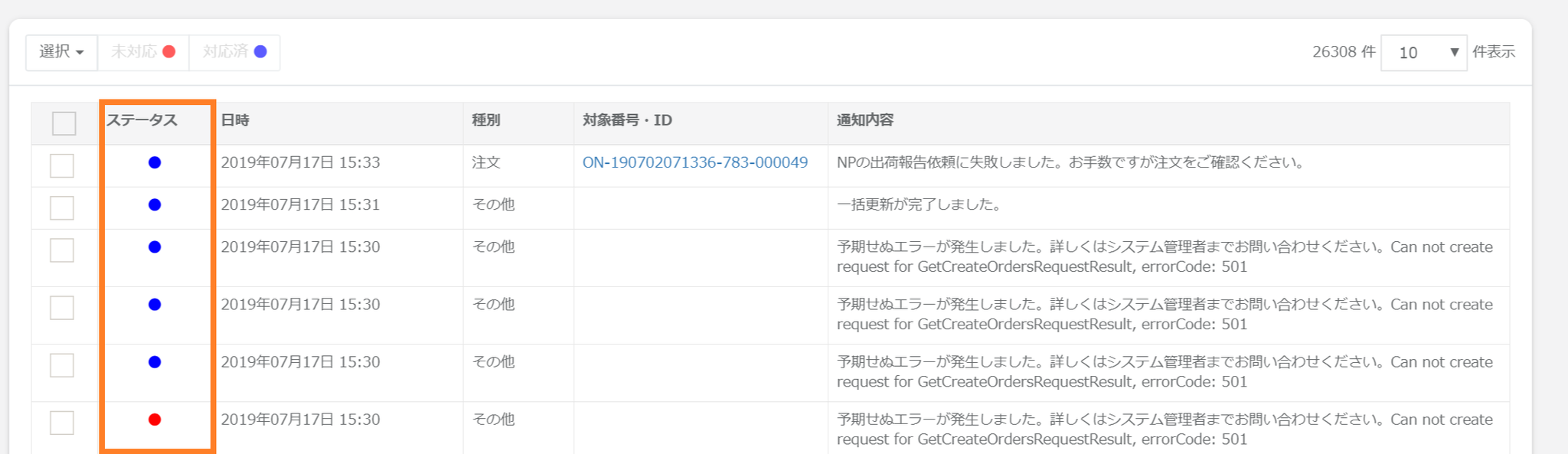 ※通知ログの通知は各注文の通知内容欄にも表示されます。