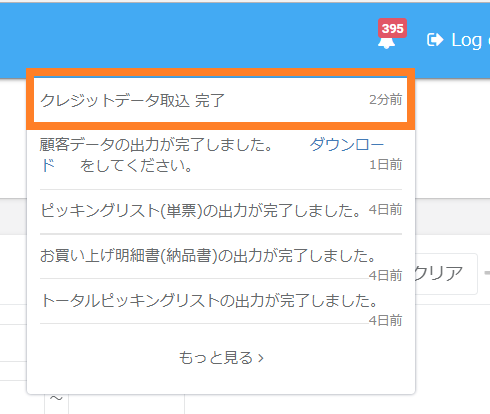 ⑩アップロードが完了すると、画面右上にある通知マークが更新されます。通知マークをクリックすると完了報告が表示されます。